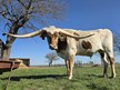 Meet Iron Mike, he is a striking steer with a unique white coat adorned with beautiful brown patches. This guy is an impressive animal that boasts straight, wide horns that add to its strong appearance. Well-built and sturdy, this steer is not only a visual standout but also a reliable and healthy addition to any herd. Perfect for those looking for a powerful Steer for amazing yard art. Pedigree includes Cowboy Tuff Chex, Cowboy Remedy EOT & JTW Oh My's Bandera Boy expecting MASSIVE horns!